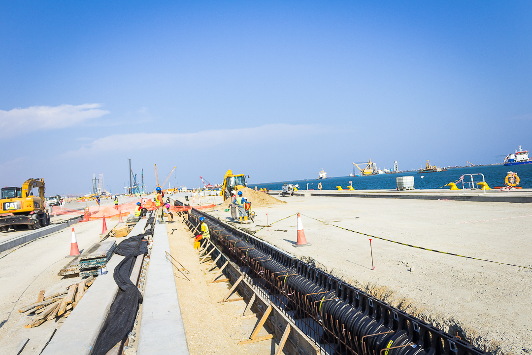 We have had a lot of experience in civil engineering works in the construction of the harbour. We have been deeply involved in works like accropode for the breakwater, jetty and special drainage like Aco drains (i.e Q Max).